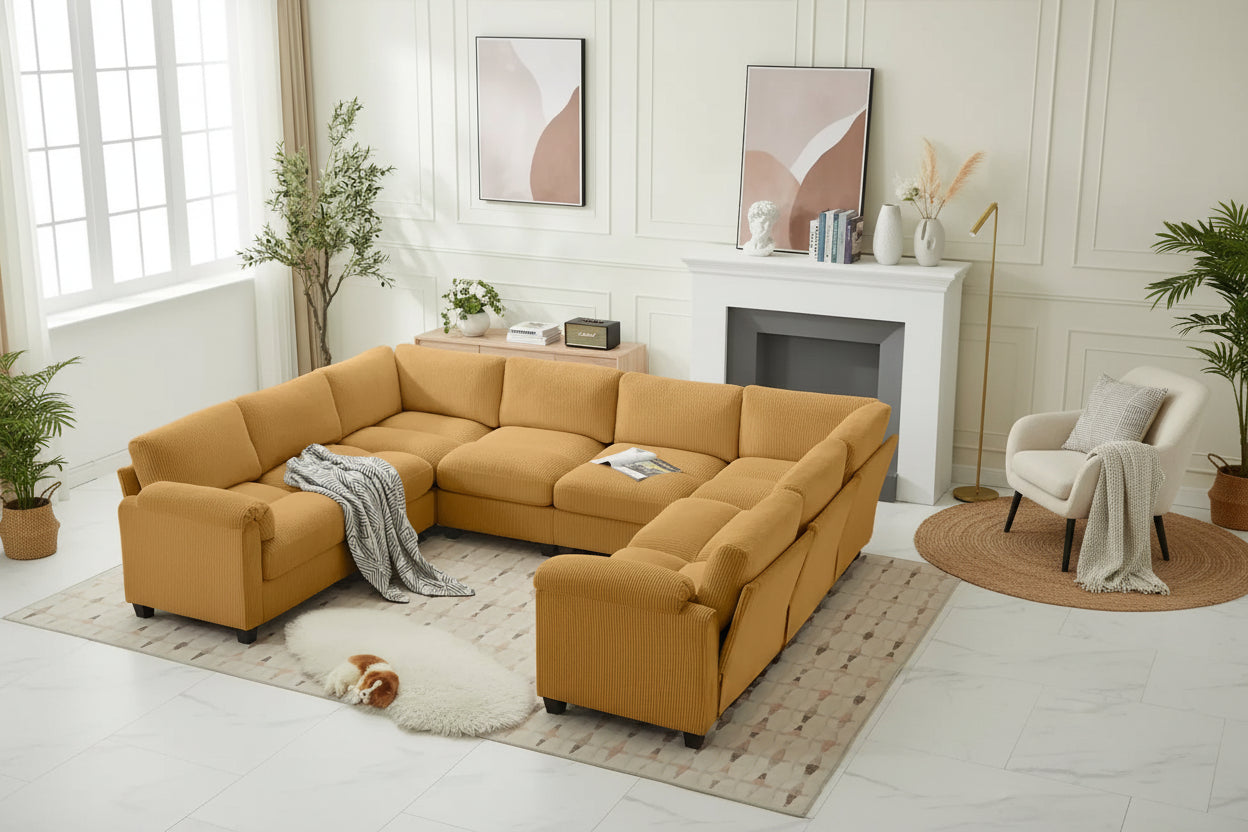 U-Shaped Symmetrical Corduroy Sofa